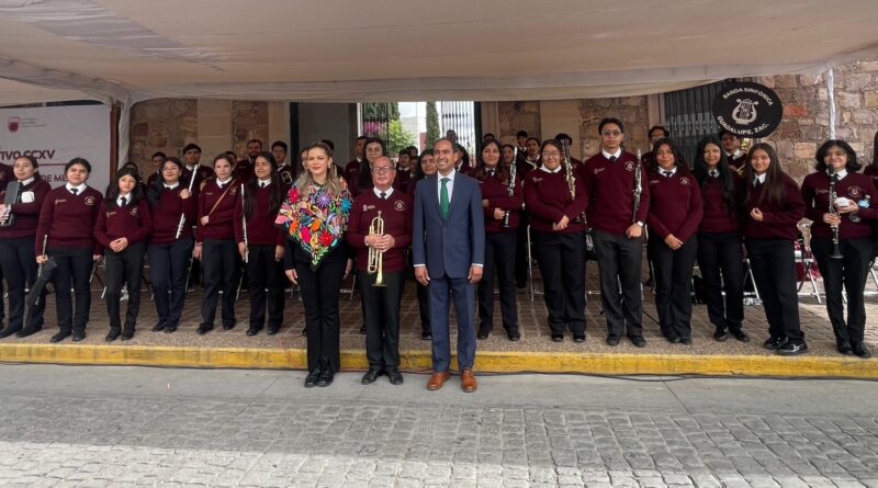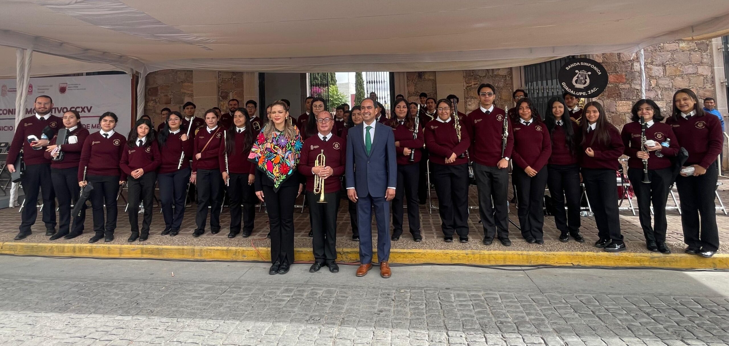 El Presidente Municipal de Guadalupe, Pepe Saldívar reconoció y felicitó a la banda musical, dirigida por el Mtro. Aldo López Márquez, Director Artístico durante 28 años, por el 45 aniversario de su fundación.