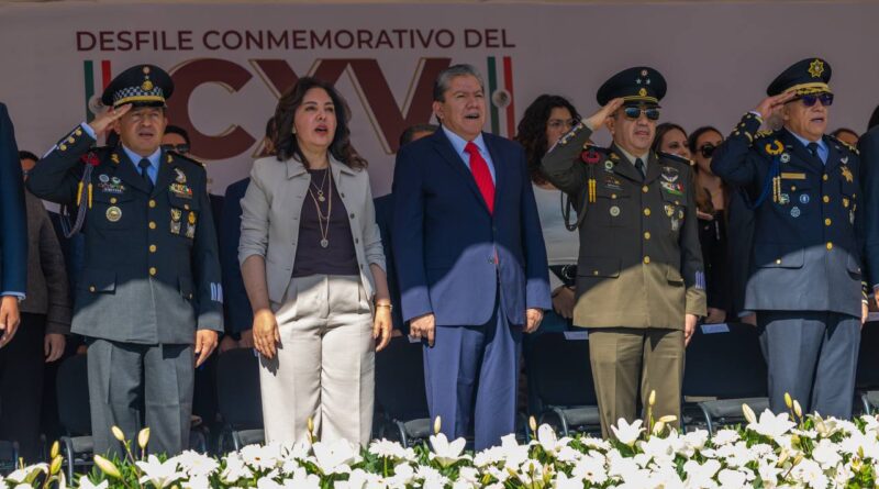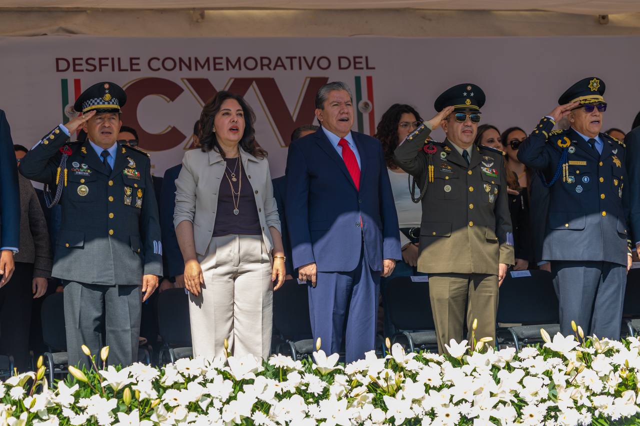Acompañado por su esposa, la Presidenta del Sistema Estatal para el Desarrollo Integral de la Familia (SEDIF), Sara Hernández Campa, el mandatario estatal aplaudió las demostraciones tácticas, ejercicios físicos, presentaciones culturales y actos simbólicos conmemorativos.
