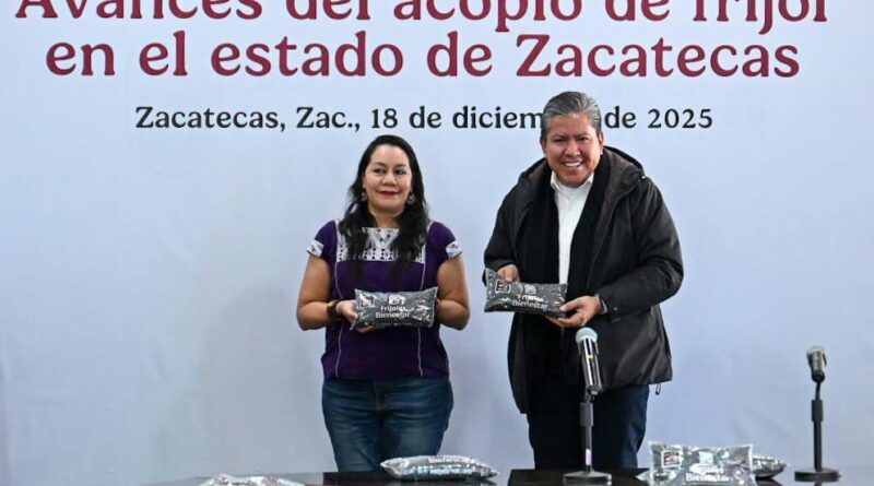 Zacatecas, Zac., 18 de diciembre de 2025.- Como resultado de la gestión del Gobernador David Monreal Ávila, el Gobierno de México, a través de la Secretaría de Agricultura y Desarrollo Rural (Sader) y Alimentación para el Bienestar, hicieron el compromiso de que este viernes estará abierta la totalidad de los centros de acopio de frijol en el estado, con lo que el 50 por ciento nacional se concentrará en Zacatecas.