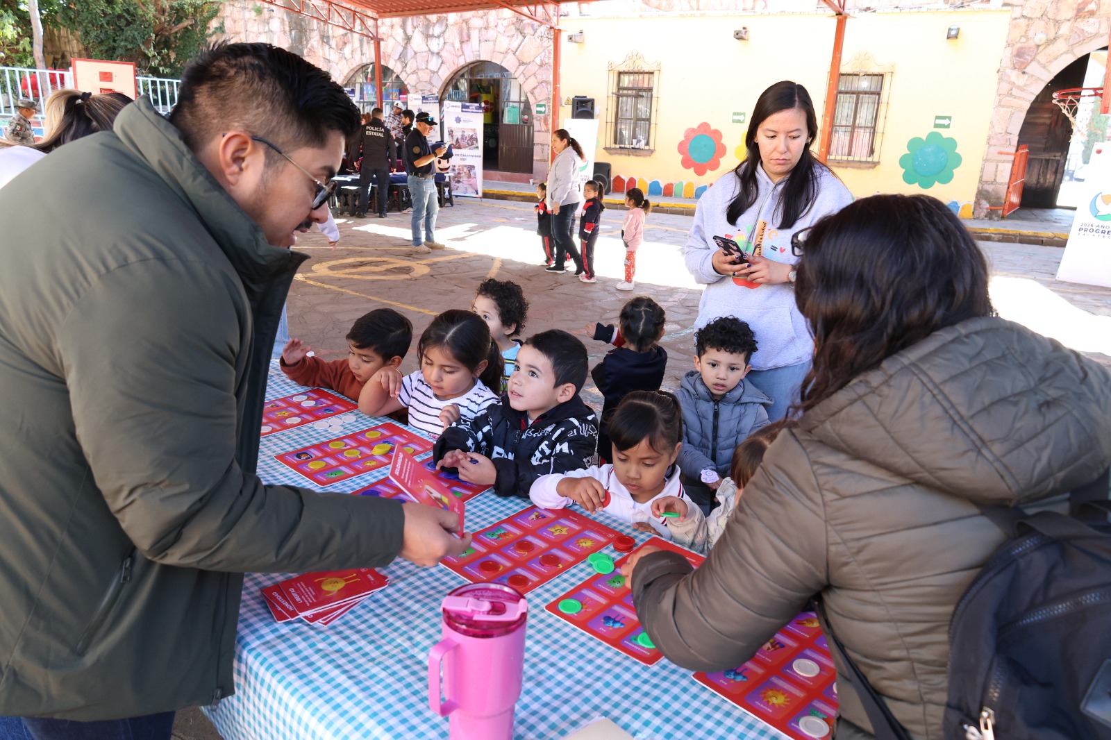 Como parte de las actividades, se ofreció una charla sobre valores y cultura de paz a un grupo de 80 madres y padres de familia y se atendió, con diversas actividades lúdicas, a 110 alumnas y alumnos de la institución, coordinadas por las secretarías General de Gobierno y de Seguridad Pública, la Coordinación Estatal de Protección Civil, el Sistema Estatal de Protección Integral de Niñas, Niños y Adolescentes, y la Guardia Nacional.