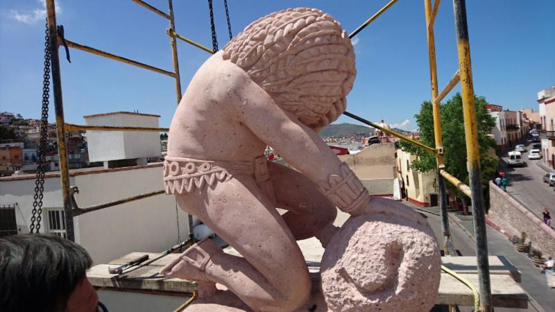 Zacatecas, Zac.- En un esfuerzo por mantener vivo el patrimonio cultural de la entidad, este viernes, la Junta de Protección y Conservación de Monumentos y Zonas Típicas del Estado de Zacatecas realizó la reposición de la escultura del Indio Triste, en su sitio original, luego de que la pieza auténtica colapsara el 13 de septiembre pasado.