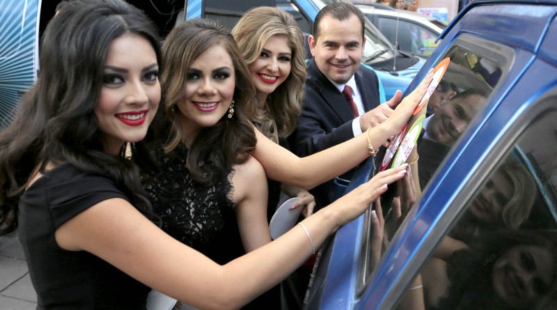 Al finalizar la presentación, las candidatas se dirigieron hacia la Avenida Hidalgo para realizar la primera pega de calcomanías de la ya conocida campaña “Enfériate”. Dichos adheribles le dan a la población la posibilidad de participar en dinámicas y concursos.