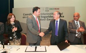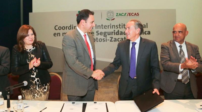 San Luis Potosí, SLP.- El Gobierno de Zacatecas y el de San Luis Potosí firmaron un convenio de colaboración en materia de procuración de justicia y seguridad pública, a fin de fortalecer el combate a la delincuencia de manera eficiente en los municipios limítrofes de ambos estados de la República.