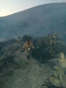 Moisés Cortés Solís, encargado de la Unidad Municipal de Protección Civil de la capital, informó que el esfuerzo coordinado entre la corporación municipal, bomberos del estado y personal de la Comisión Nacional Forestal (Conafor) permitió la extinción del fuego que amenazaba con llegar a las instalaciones de la planta minera Capstone Gold, a donde llegaron elementos de la Secretaría de la Defensa Nacional (Sedena), ante el riesgo de que alcanzara material explosivo que se utiliza para la operación de la mina.