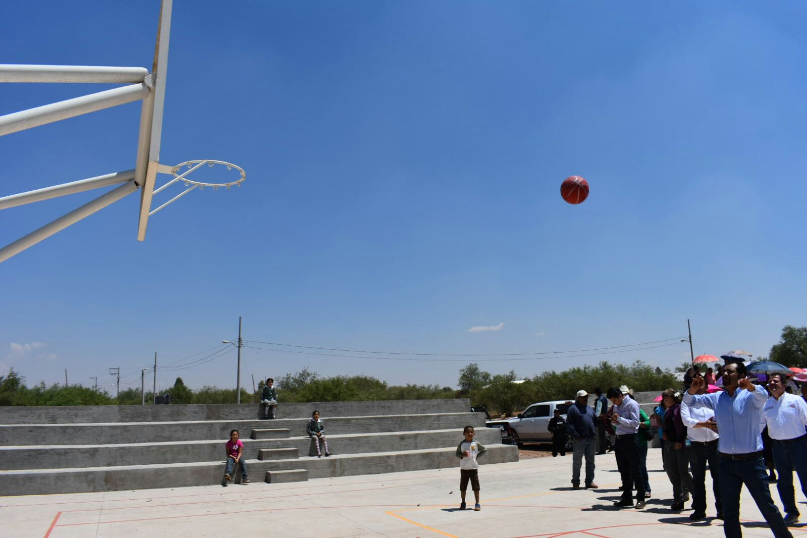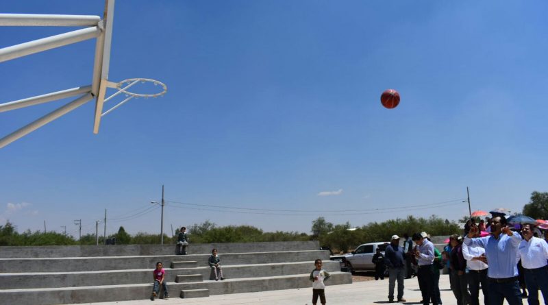 Ojo de Agua, Guadalupe Zac. Con una inversión cercana al millón de pesos se construyó la cancha multiusos de la plaza principal en la comunidad Ojo de Agua, que fue inaugurada por Osvaldo Ávila Tizcareño, dirigente antochista en Zacatecas, además de Sonia Ledezma, delegada en la comunidad y con la presencia de habitantes.