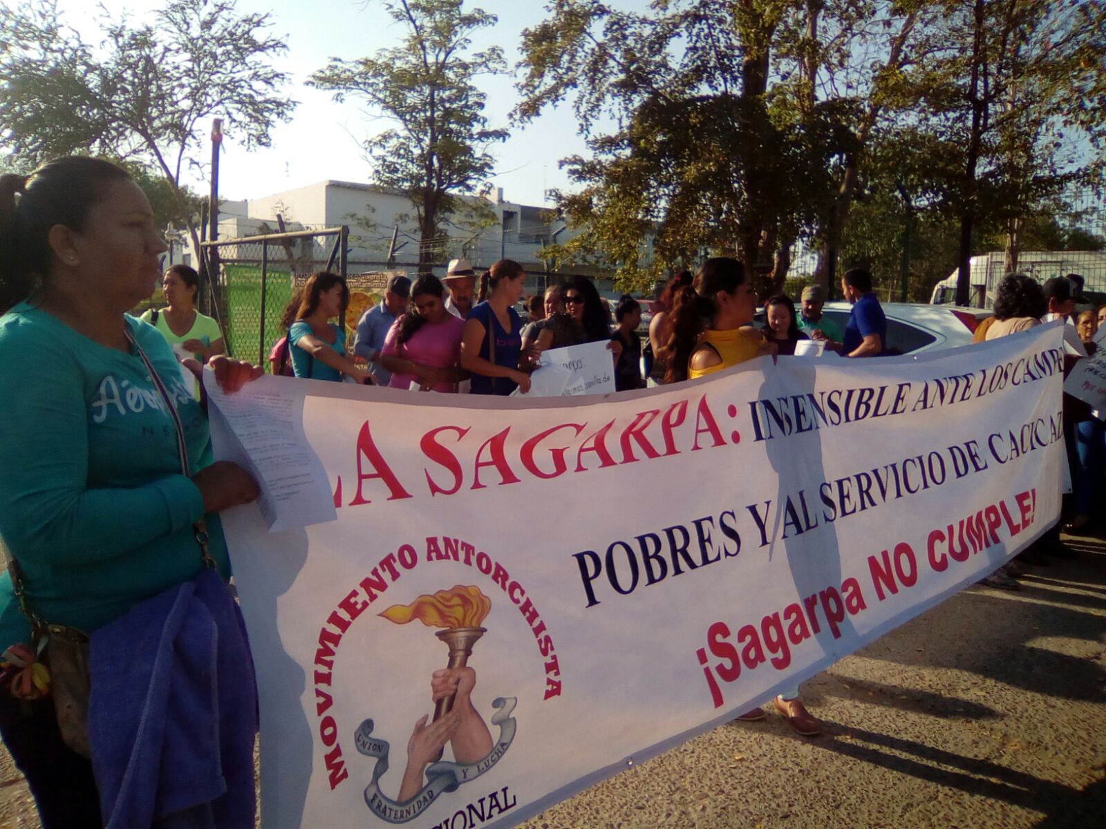 Guadalupe Zac. Campesinos agremiados a Antorcha sostuvieron una manifestación en las oficinas de la Secretaría de Agricultura, Ganadería, Desarrollo Rural, Pesca y Alimentación (Sagarpa), como una acción coordinada a nivel nacional para denunciar la insensibilidad, tortuguismo y burocratismo de esta dependencia. El objetivo es lograr debida atención a los campesinos pobres afiliados al antorchismo y la oportuna entrega de los apoyos que requieren los productores del campo.
