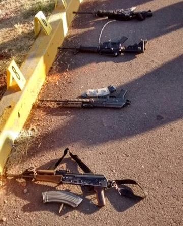 El armamento y equipo táctico asegurado fue:2 armas largas AK-47, calibre 7.62 milímetros;2 armas largas AR-15, calibre .223 milímetros; 15 cargadores al calibre 7.62 milímetros; 11 cargadores al calibre .223 milímetros; 450 cartuchos útiles calibre 7.62 milímetros y 330 cartuchos útiles calibre .223 milímetros.