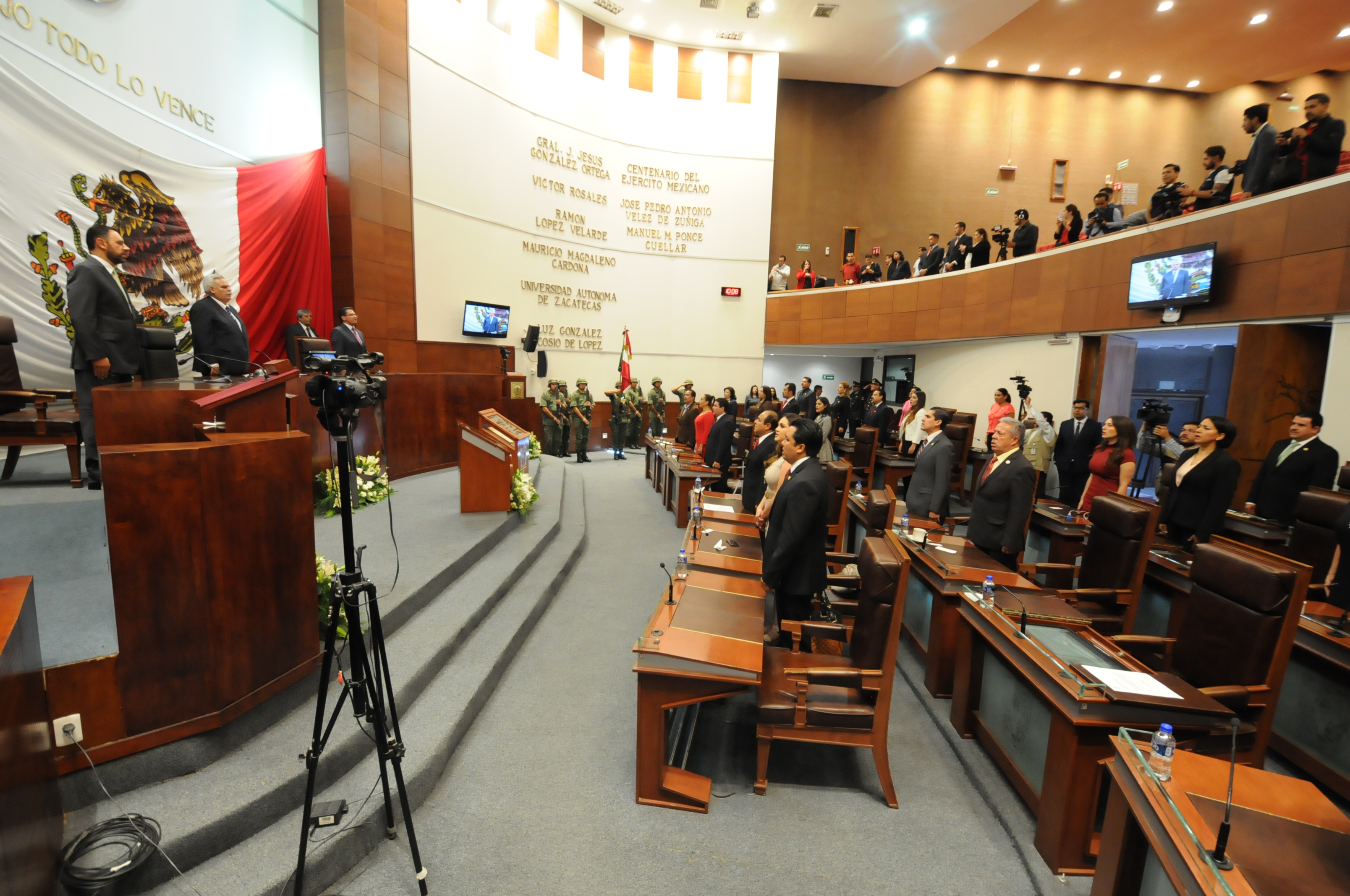 Con la intención de conmemorar el inicio de los trabajos del Congreso Local de 1917, la LXII Legislatura del Estado desarrolló este sábado 1 de Julio Sesión Solemne, contando con la presencia de los titulares del Poder Ejecutivo y Poder Judicial del Estado, Alejandro Tello Cristerna y Amando Ávalos Arellano, a fin de reconocer la labor jurídica, social y política de los legisladores zacatecanos que participaron en la elaboración y discusión de la Constitución local, que fue proclamada en enero de 1918.