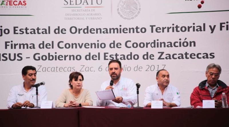 Además, esta tarde, como parte de la gira de trabajo en la entidad de la titular de la Secretaría de Desarrollo Agrario Territorial y Urbano (Sedatu), Rosario Robles Berlanga, en Palacio de Gobierno se instaló el Consejo Estatal de Ordenamiento Territorial, que es presidido por el mandatario estatal, y con lo cual Zacatecas se convierte en el estado 20 en hacerlo.