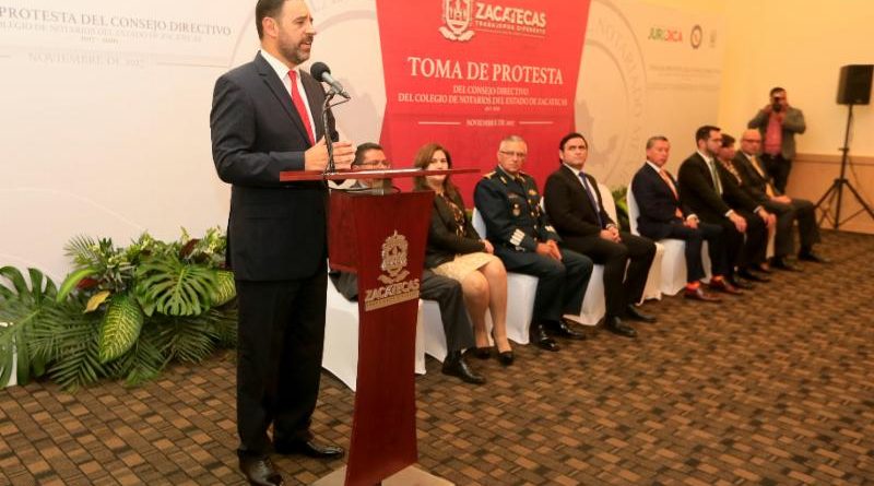 Agradeció el interés del mandatario estatal por tener una relación cercana con los notarios de Zacatecas y, desde el Colegio Nacional, les ofreció todo su respaldo para atender cualquier reto que se presente.
