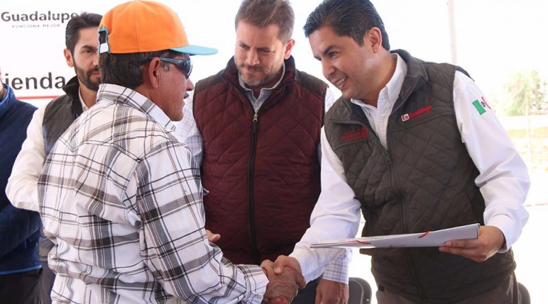 En el marco de la firma y entrega de escrituras, así como paquetes para el mejoramiento de vivienda y de autoconstrucción, el presidente municipal agradeció el respaldo del gobernador Alejandro Tello Cristerna por la voluntad política y altura de miras para impulsar la regularización de la tierra y dar certidumbre sobre la vivienda a las familias guadalupenses.