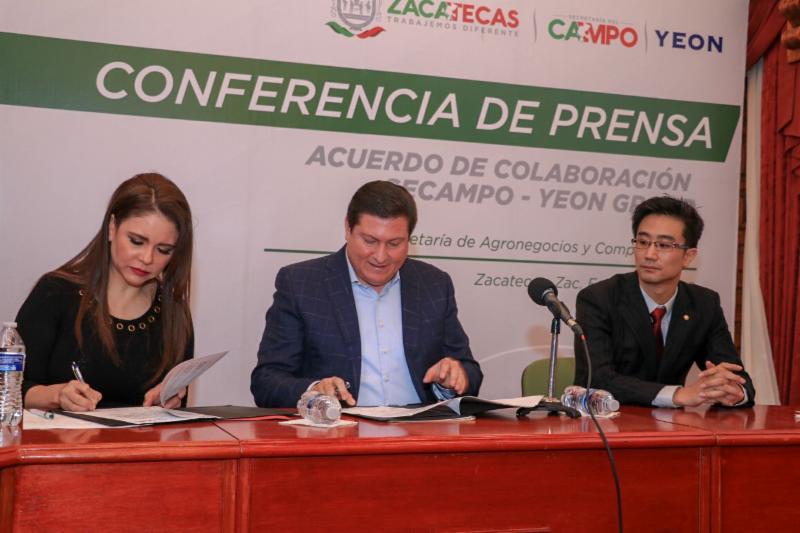 Zacatecas, Zac.- El Gobierno del Estado y el Grupo Yeon México firmaron la carta de intención para mejorar la productividad del campo y facilitar el comercio internacional; el proyecto de inversión potencial es de 1.5 mil millones de dólares, en la primera etapa, hasta 5 mil millones de dólares, en la segunda.