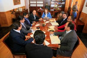 El Gobernador Alejandro Tello dio indicaciones y tareas específicas que tienen que ver con la consolidación de las acciones establecidas en el Plan Estatal de Desarrollo, por lo que Fabiola Torres Rodríguez, secretaria general; Víctor Rentería, jefe de Oficina; Jorge Miranda Castro, secretario de Finanzas; Gema Mercado Sánchez, secretaria de Educación; Gilberto Breña, secretario de Salud; Jorge Luis Pedroza, secretario de Infraestructura; Jorge Escobedo Armengol, secretario de Administración; Adolfo Bonilla Gómez, secretario de Campo; Ismael Solís Mares, Secretario de Vivienda, y Héctor Alvarado, coordinador de Comunicación Social, sostuvieron una reunión para establecer y definir las actividades a realizar.