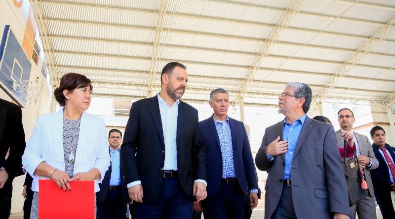 Zacatecas, Zac.-El Gobernador Alejandro Tello entregó, a casi 600 estudiantes y docentes de la Escuela Normal Manuel Ávila Camacho, obras que dignifican la infraestructura de uno de los planteles con mayor historia en el estado y garantizan una mejor formación de los profesores que en un futuro cercano educarán a miles de niños zacatecanos.