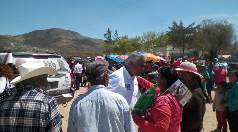 PINOS, Zac., 24 Abril.- En gira de campaña por los municipios de Villa Hidalgo y Pinos, José Narro Céspedes, próximo Senador de la República por la Coalición Juntos Haremos Historia (Morena-PES-PT) constató, de viva voz de los ciudadanos, el hartazgo a las promesas del partido en el gobierno, que ha abandonado a los ciudadanos y se ha robado los recursos que corresponden al campo y las ciudades.