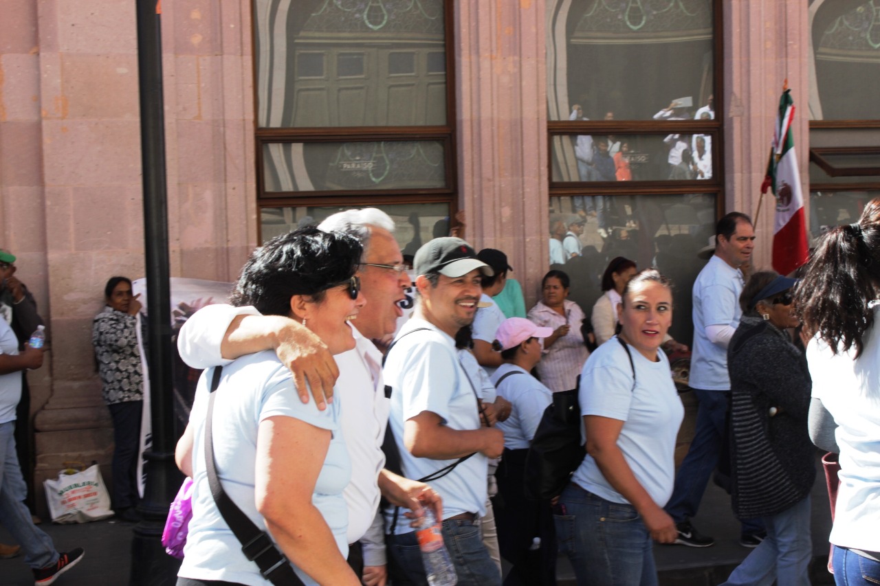 Con toda la civilidad necesaria para realizar un proceso electoral digno, contempló la marcha y saludó a algunos trabajadores de quienes recibió palabras de aliento y expresaban su apoyo para este proyecto del que forma parte.