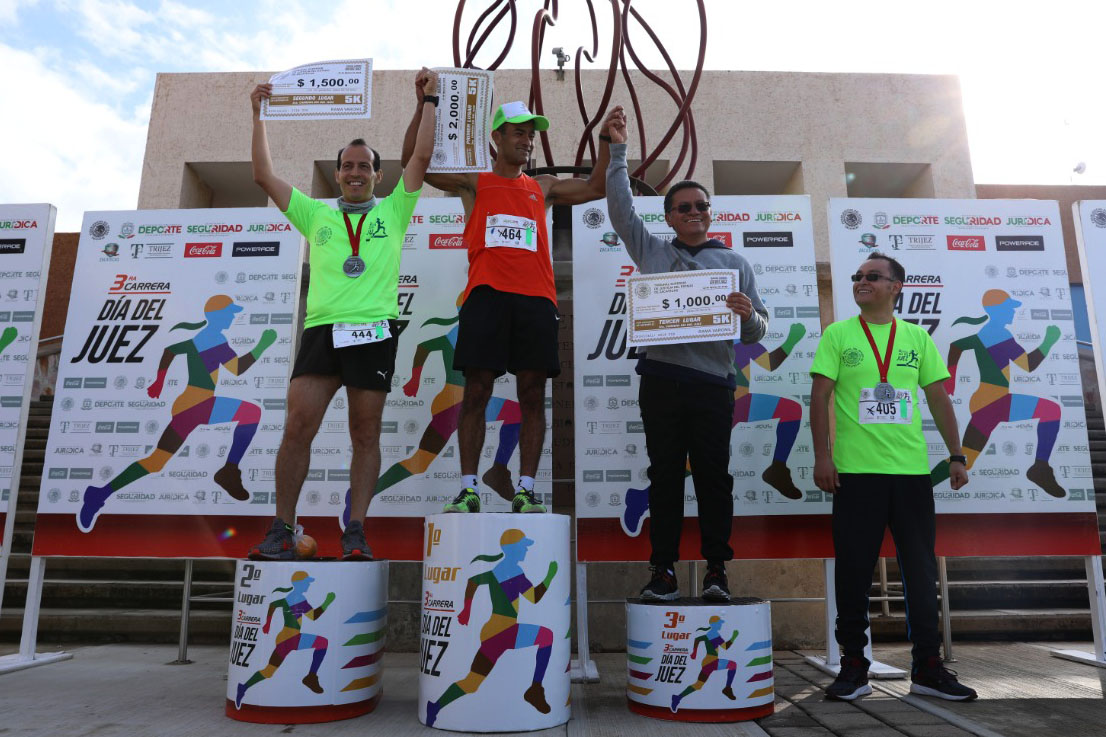 Finalmente los ganadores de la categoría 5k “Personal del Poder Judicial” en el ramo varonil fueron Juan de Dios Sandoval, en primer lugar, en segundo lugar Hugo Rivera y el Magistrado Presidente Armando Ávalos Arellano en tercero, así como, una mención al cuarto lugar que ocupó Antonio Romero.
