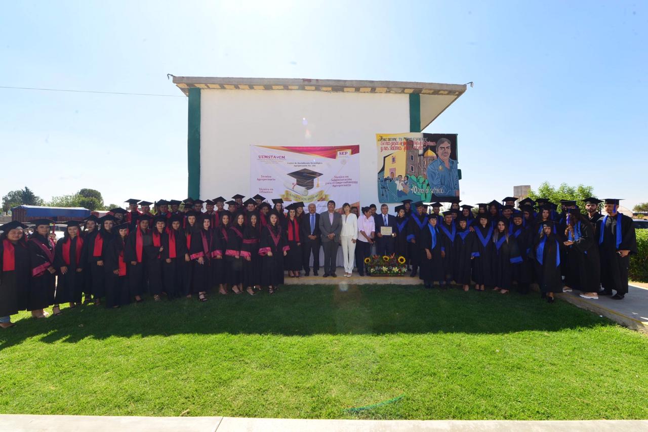 Asimismo, el Alcalde, estuvo presente en la ceremonia de graduación del Colegio de Estudios, Científicos y Tecnológicos del Estado de Zacatecas (Cecytez) plantel Plateros, de donde egresaron 109 jóvenes que pertenecen a la décima generación que culmina sus estudios en este plantel de El Mineral.