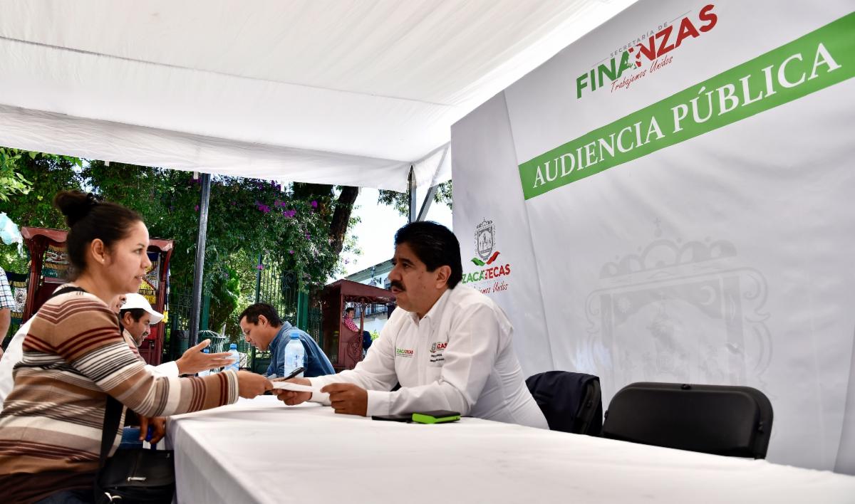 Jerez, Zacatecas.- La Secretaría de Finanzas (Sefin) durante la octava Audiencia Pública en el municipio de Jerez, benefició a cerca de 500 contribuyentes con diversas facilidades administrativas.