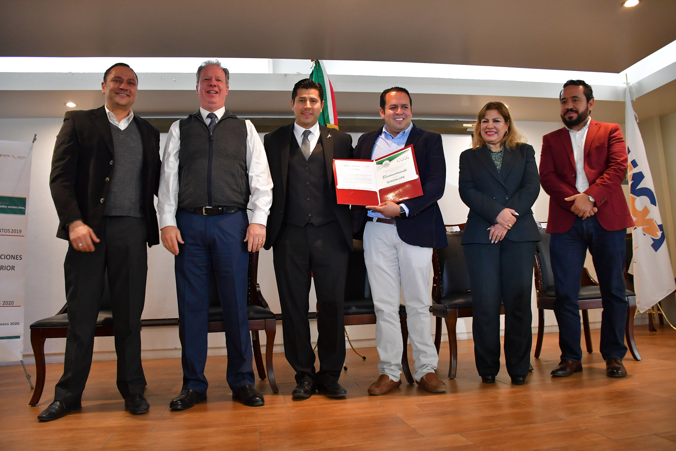 El alcalde de Guadalupe, Zacatecas, Julio Cesar Chávez Padilla, recibió de manos de Rafael Cortez Gómez, Coordinador del Instituto Nacional para el Federalismo y Desarrollo Institucional (INAFED), un reconocimiento por la participación del Ayuntamiento de Guadalupe en la implementación de la Guía Consultiva de Desempeño Municipal Edición 2019.