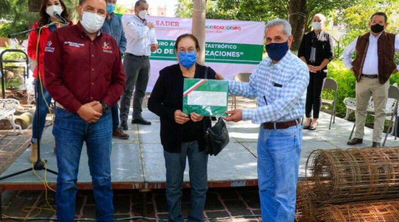 Mediante el subcomponente Atención a Siniestros Agropecuarios del Programa de Fomento a la Agricultura, la Secampo atendió a 189 productores de Calera, Chalchihuites y Sombrerete, para cubrirles los siniestros en 923 hectáreas con 1.2 millones de pesos.