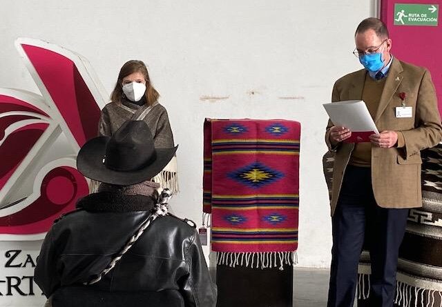 Zacatecas, Zac.- Cinco artesanas y artesanos del estado de Zacatecas resultaron ganadores del Concurso Nacional del Sarape, obteniendo el Galardón Nacional, máximo reconocimiento a la mejor pieza de este evento que organiza el Fondo Nacional para el Fomento de las Artesanías (Fonart) y el Gobierno de Querétaro, en manos del maestro José Ramón Vázquez Ortiz.