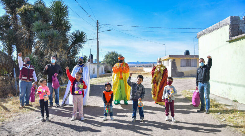 Como parte de las Brigadas Navideñas que recorren calles, barrios, colonias y comunidades de todo el municipio de Guadalupe, el alcalde, Julio César Chávez Padilla, llevó, además del mensaje de alegría, esperanza y solidaridad a los niños guadalupenses, la ilusión de los Reyes Magos para entregar bolos y juguetes.