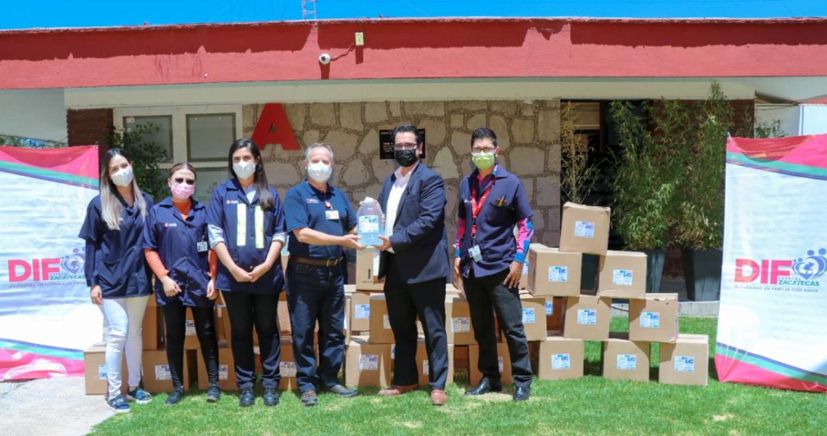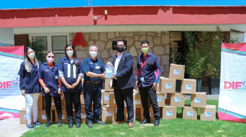 Zacatecas, Zac.- Directivos y personal de Lear Corporation, planta Zacatecas, se unieron para realizar un donativo de mil litros de gel antibacterial y 600 cubrebocas al Sistema Estatal para el Desarrollo Integral de la Familia (SEDIF), como parte de las acciones que realiza como empresa socialmente responsable.