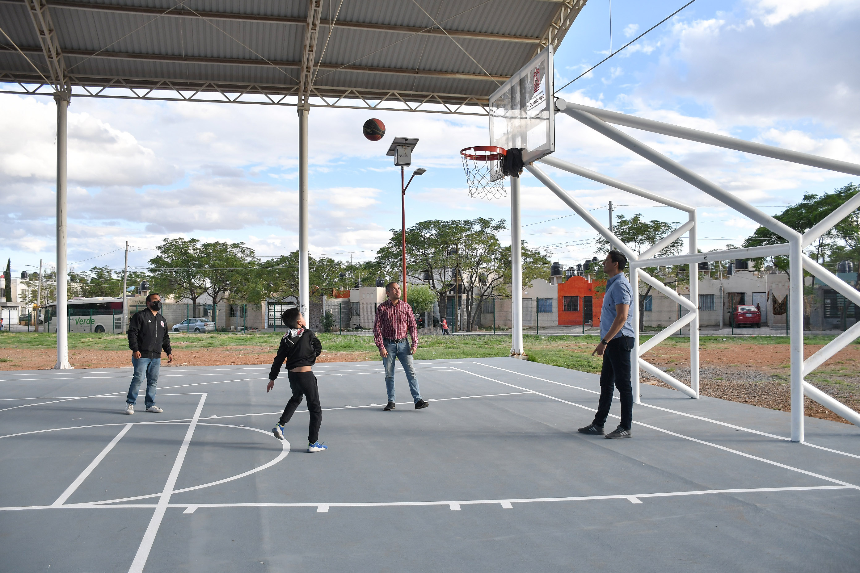 Además, González Navarro señaló que en los próximos días estará iniciando un ambicioso proyecto de prevención referente a la masificación deportiva, de salud e integración social en el que participarán destacados atletas profesionales, como el basquetbolista y ex seleccionado nacional Eduardo Esqueda, quien acompañó al alcalde en esta supervisión y se dijo sorprendido de las condiciones de la cancha próxima a entregar.