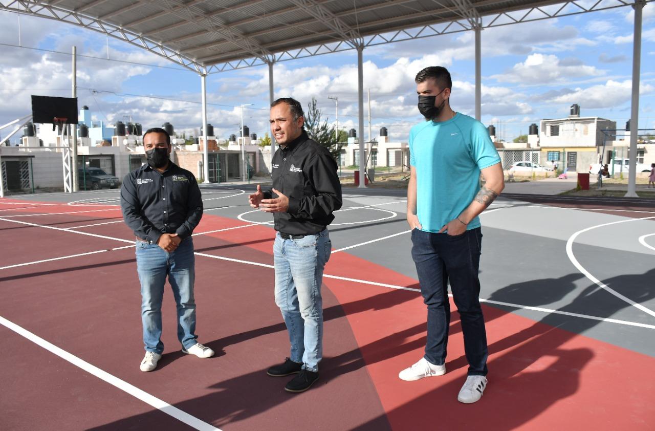 En esta supervisión, al alcalde lo acompañaron Cruz Alberto Moreno, Director del Instituto Municipal del Deporte, así como Bryan Rivera Herrera, uno de los más destacados basquetbolistas zacatecanos en activo, quien forma parte fundamental de este proyecto.