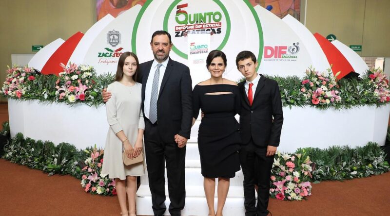 Acompañada por el Gobernador Alejandro Tello y por sus hijos, representantes de los Poderes Legislativo y Judicial del Estado, así como por Sara Hernández de Monreal, esposa de David Monreal Ávila, gobernador electo, Cristina Rodríguez cumplió a la ciudadanía con este ejercicio de rendición de cuentas y transparencia.