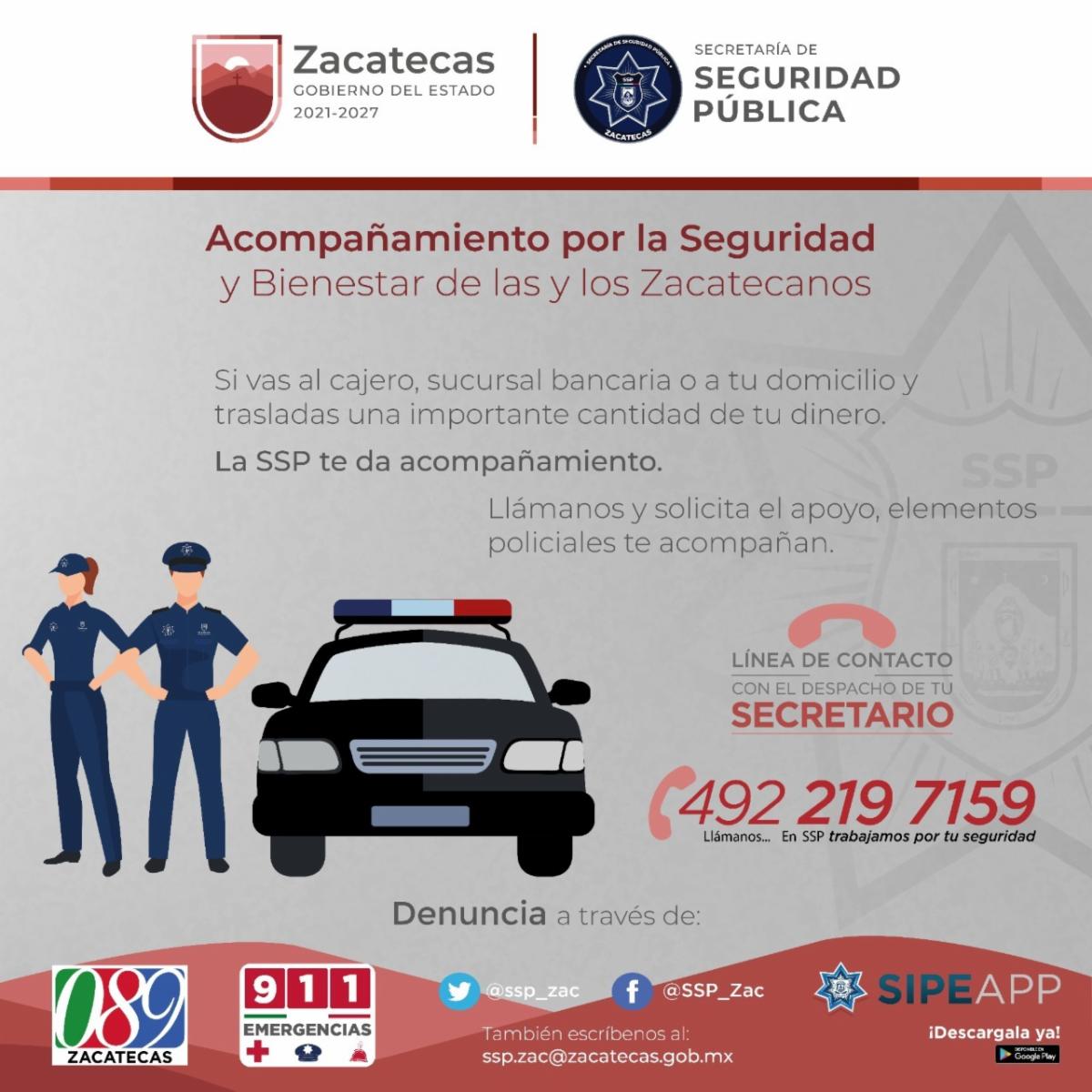 Quienes estén interesados pueden solicitar el acompañamiento a la Línea de Contacto con el Despacho de tu Secretario al 492 219 7159; la ayuda de las corporaciones es gratuita y está disponible las 24 horas del día, durante toda la semana.