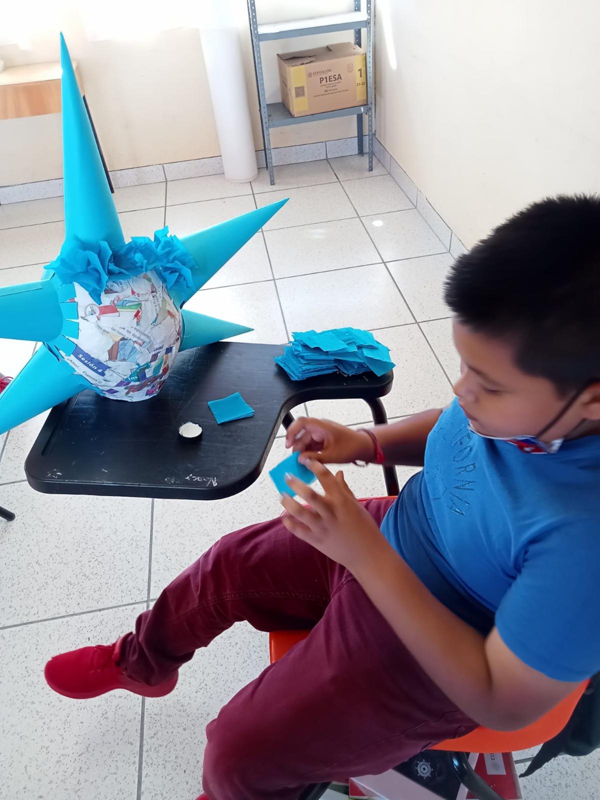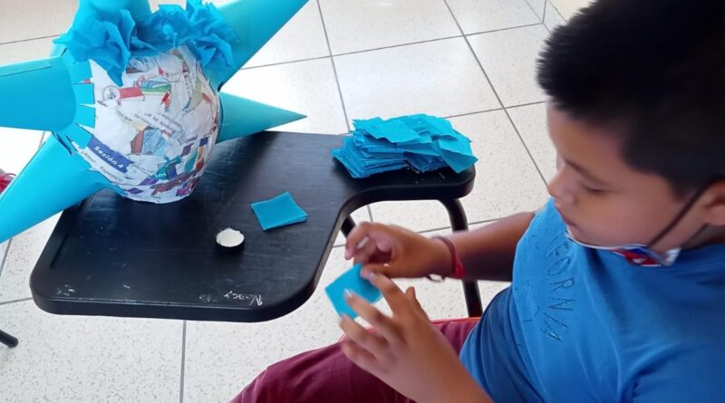 Niñez hace magia y con papel reciclable elaboran piñatas con motivo de la Navidad