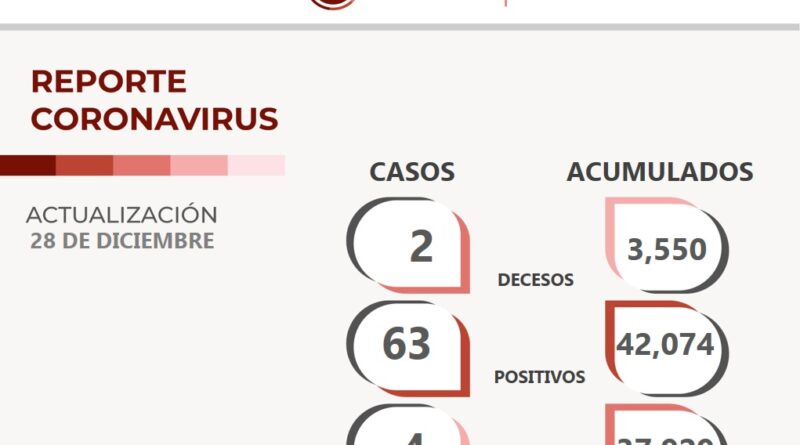 Continúa pandemia y Zacatecas registra 37 mil 929 recuperados de Covid-19; cuatro corresponden a este martes