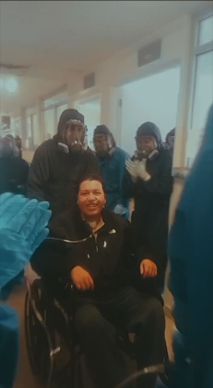 Luego de 41 días de estancia hospitalaria, este joven fue dado de alta, el domingo por la tarde, por mejoría y fue despedido con aplausos, para continuar su rehabilitación en su domicilio particular y acompañado de sus seres queridos.