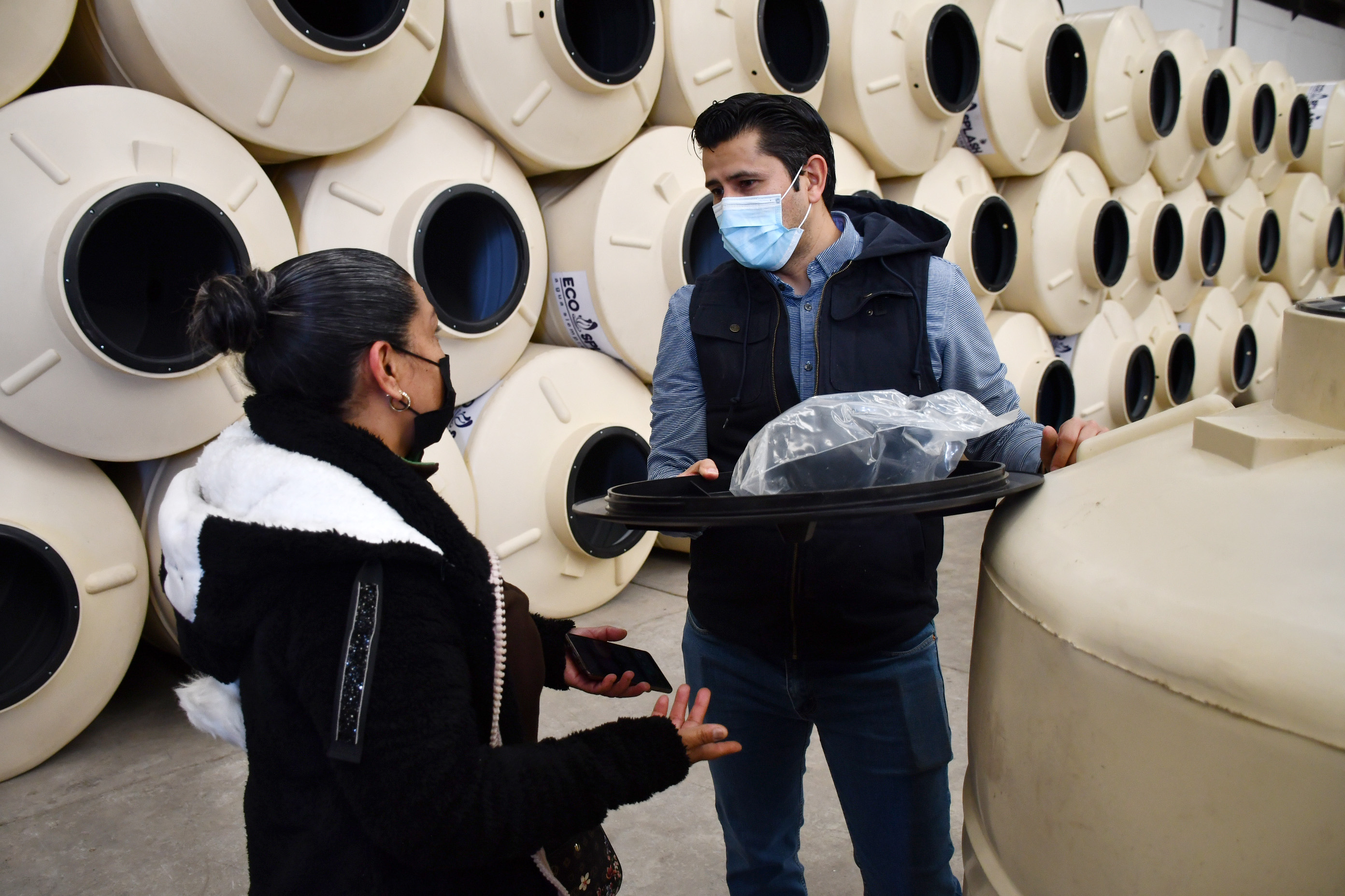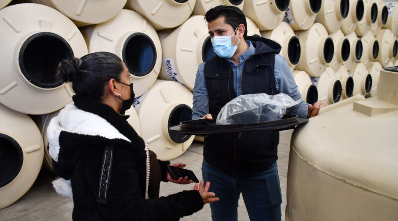 Los lineamientos del semáforo naranja para mitigar la ola de contagios de Covid-19, limita la aglomeración de personas, motivo por el que la entrega de los 300 tinacos se realiza de manera escalonada, convocando a grupos pequeños hasta concluir con la última familia beneficiada.