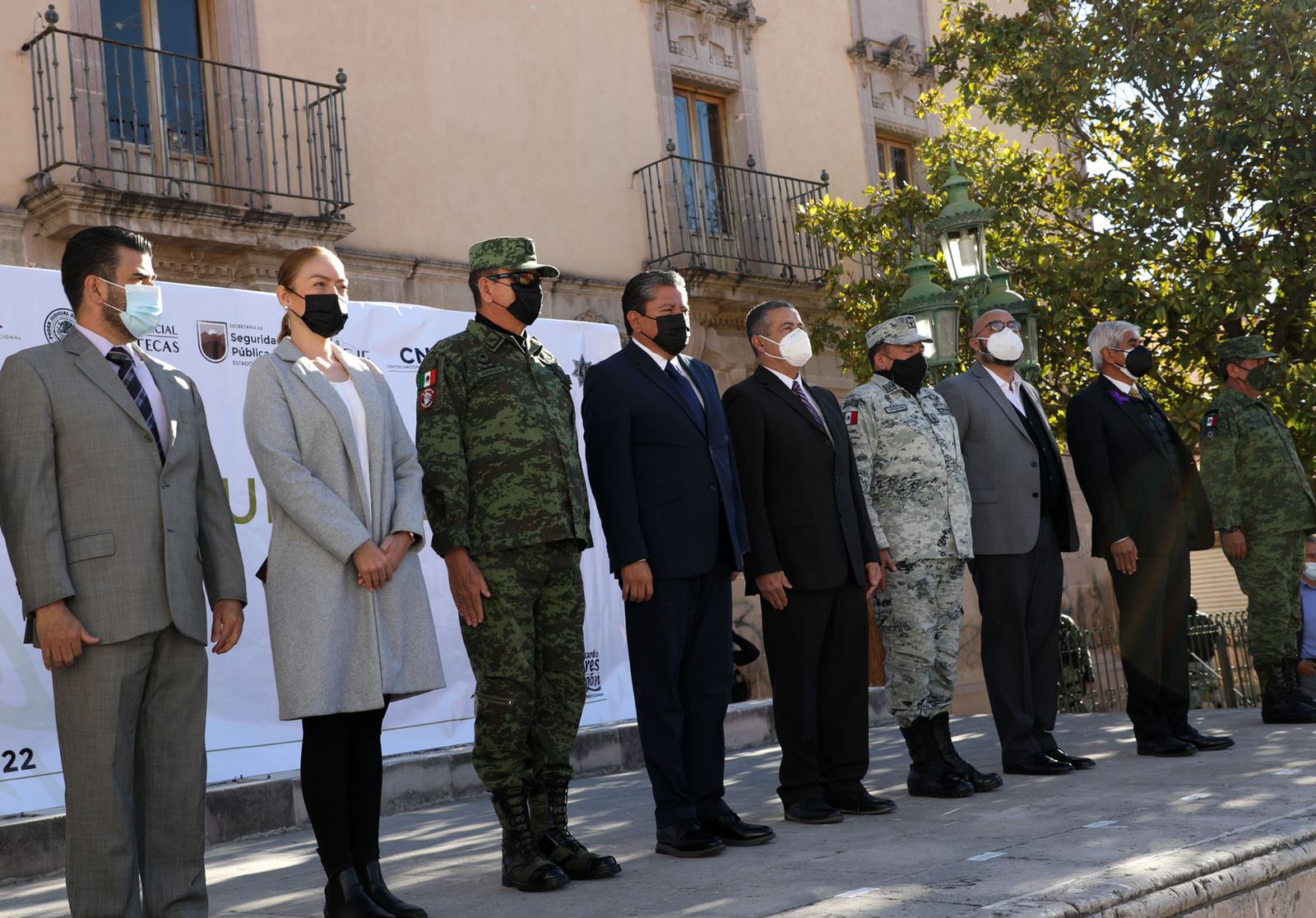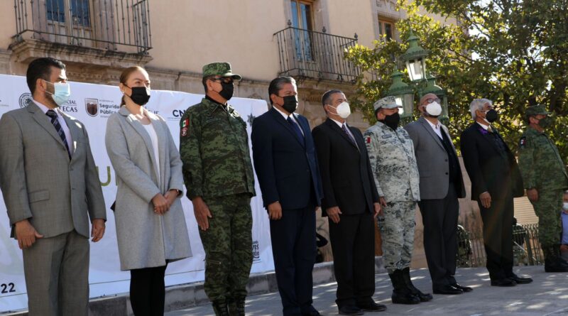 Este día, con el acompañamiento de la Guardia Nacional (GN), el Ejército, la Policía Estatal Preventiva (PEP) y los integrantes de la Mesa Estatal de Construcción de Paz, el Gobernador destacó la importancia que tiene en estos momentos el honrar los símbolos patrios, como un símbolo de la comunión que se ha iniciado para ir por la reconstrucción del tejido social.