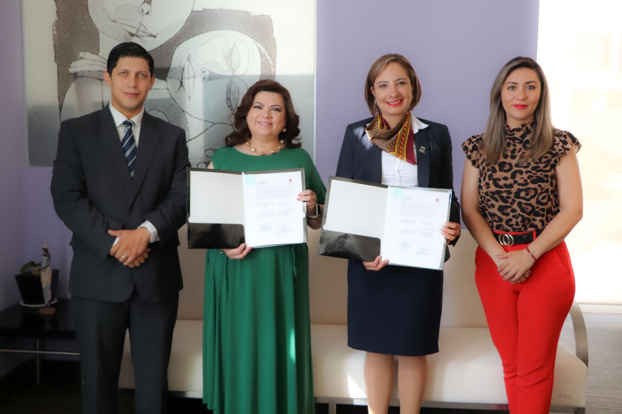 En esta firma de convenio participaron como testigos de honor, Karla Isabel Guardado Oropeza, subsecretaria de los Derechos de la Mujer de la Semujer, y Filiberto Hernández Vanegas, enlace administrativo de la Fiscalía Especializada para la Trata de Personas.