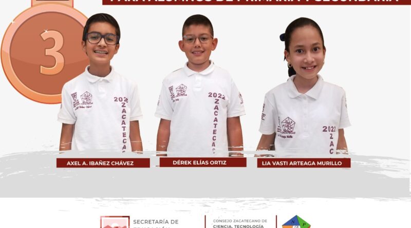 Los niños que obtuvieron medalla de oro son Rodrigo Saldívar Mauricio, del Colegio de Cultura y Educación, de Fresnillo; Ángel de la Cruz Martínez, de la secundaria J. Jesús Larios, de Tacoaleche; Bruno González Sánchez, del Instituto Educativo de Zacatecas y Braulio González García, del Colegio Fray Antonio Margil de Jesús, en Villanueva.