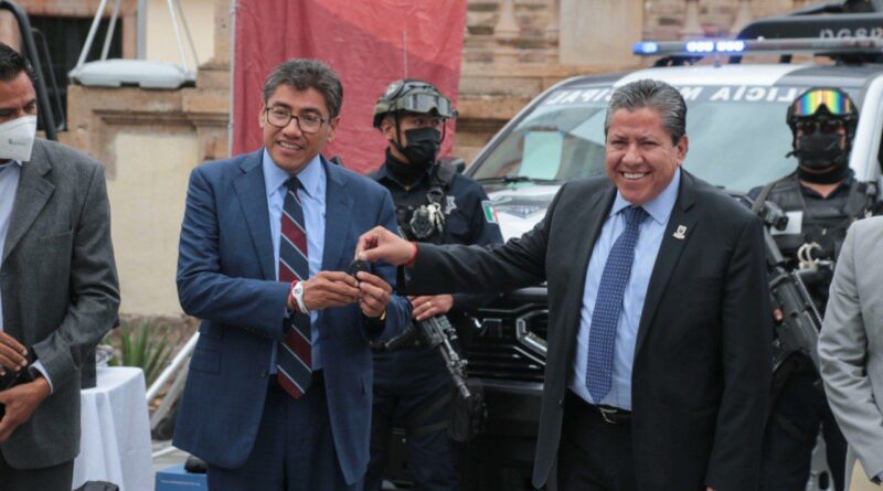 Entrega Gobernador David Monreal patrullas y equipo en Fresnillo; destaca conjunción de esfuerzos para fortalecimiento de la seguridad