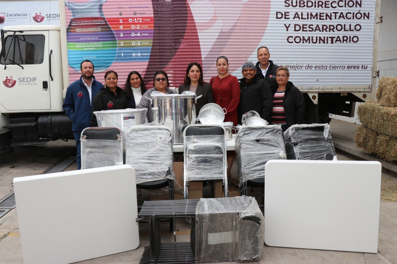 Sara Hernández de Monreal entregó, además, reequipamiento para espacios de alimentación de los municipios de General Pánfilo Natera y Fresnillo.