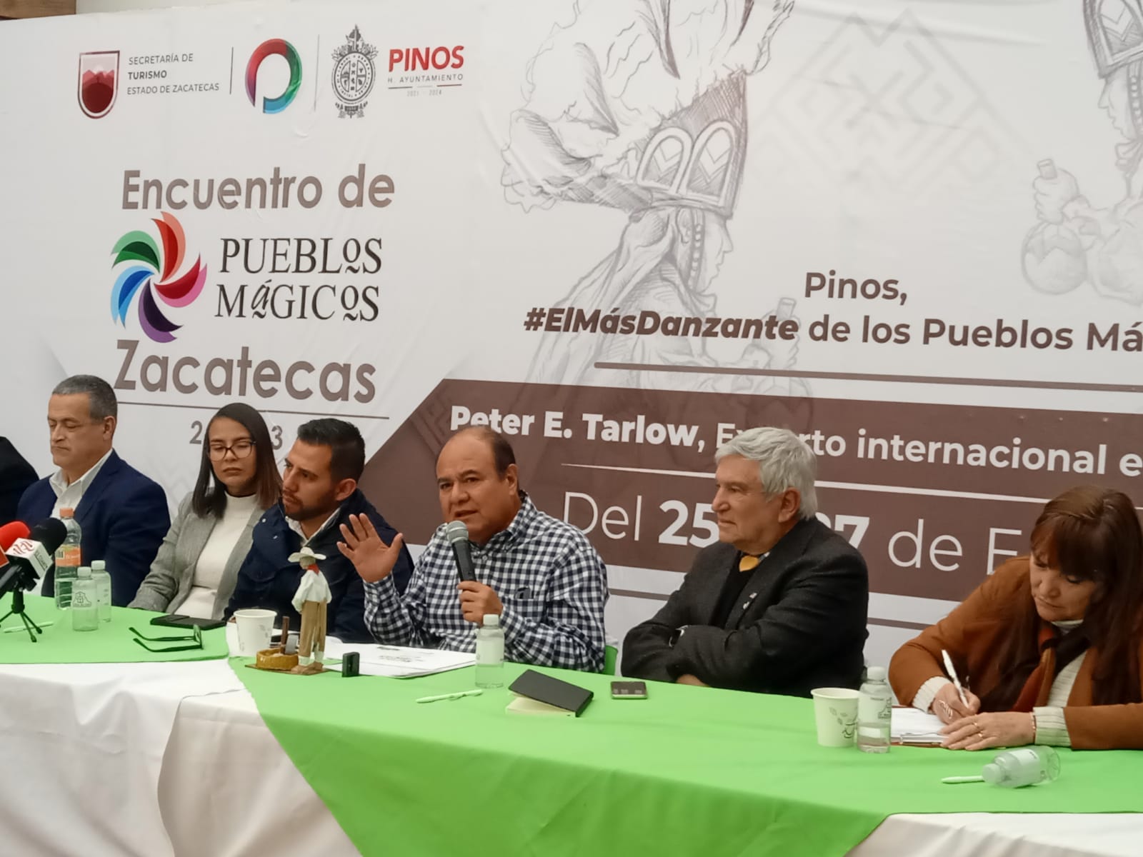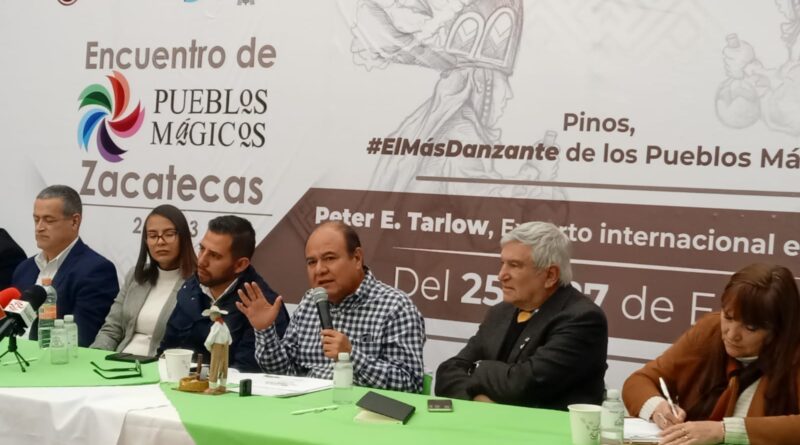 En el Encuentro Estatal de Pueblos Mágicos 2023, con sede en el municipio de Pinos Pueblo Mágico, se dieron cita autoridades municipales y estatales del sector turístico para exponer, debatir y consensar propuestas que contribuyan a mejorar las condiciones de seguridad de la entidad en temas turísticos.
