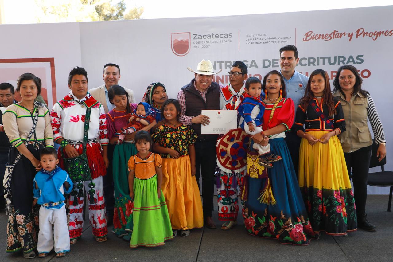 Durante la entrega, estuvieron además Diana Dueñas Flores, representante de la Delegación de Programas para el Desarrollo, región Fresnillo, los secretarios de Obras Públicas y Salud, Guillermo Carrillo y Uswaldo Pinedo, así como Leopoldo de la Cruz Villa, representante comunidad wixárica.