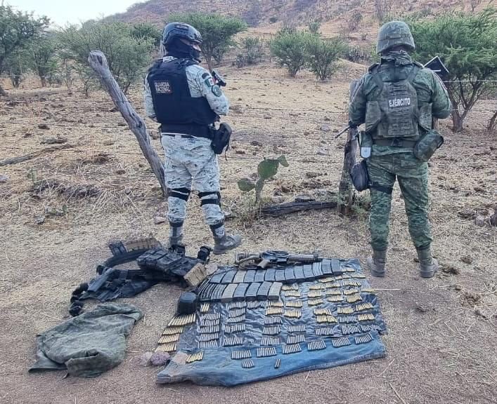 Efectivos del Ejército Mexicano, Guardia Nacional y la Fuerza de Reacción Inmediata Zacatecas (FRIZ), realizaban reconocimientos terrestres en comunidades de Susticacán y al patrullar en inmediaciones del poblado El Chiquihuite, visualizaron a dos masculinos aparentemente armados.