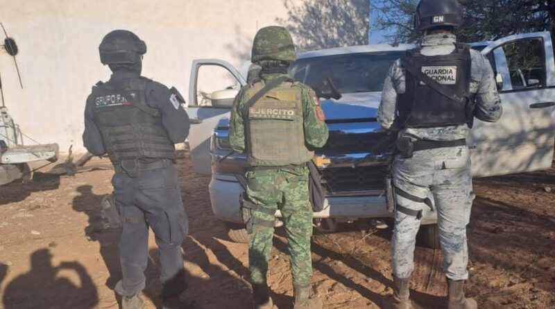 Durante esta acción, fueron aseguradas dos camionetas, una Toyota Tacoma y una Chevrolet Silverado; así como un arma de fuego larga, 22 cargadores y decenas de cartuchos útiles.