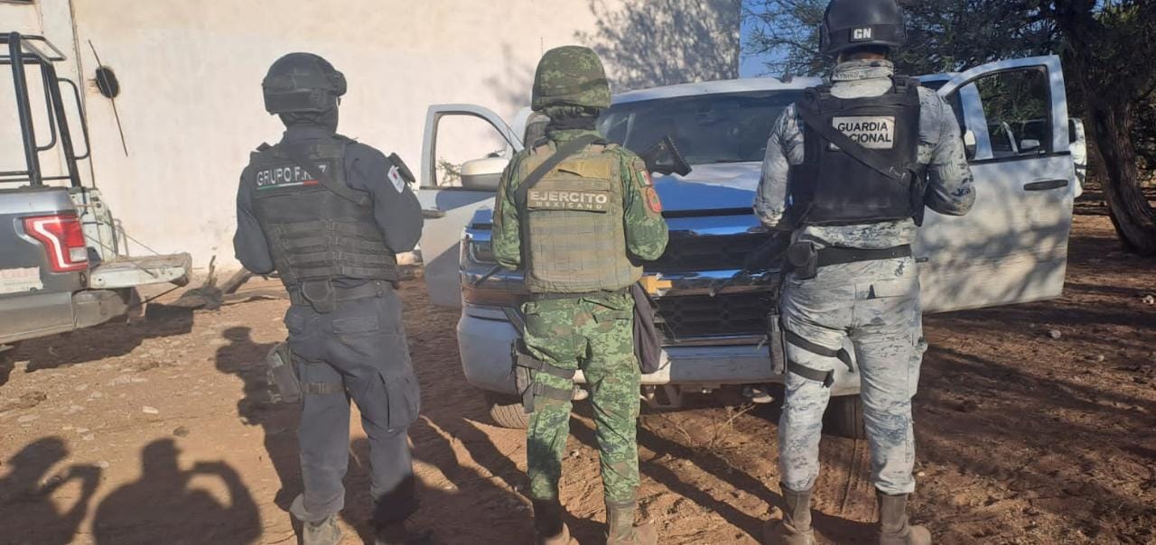 Fresnillo, Zac., 14 de mayo de 2023.- Durante recorridos de vigilancia y disuasión del delito, efectivos de la Fuerza de Reacción Inmediata Zacatecas (FRIZ), Ejército Mexicano y Guardia Nacional rescataron a cinco víctimas que estaban privadas de su libertad.