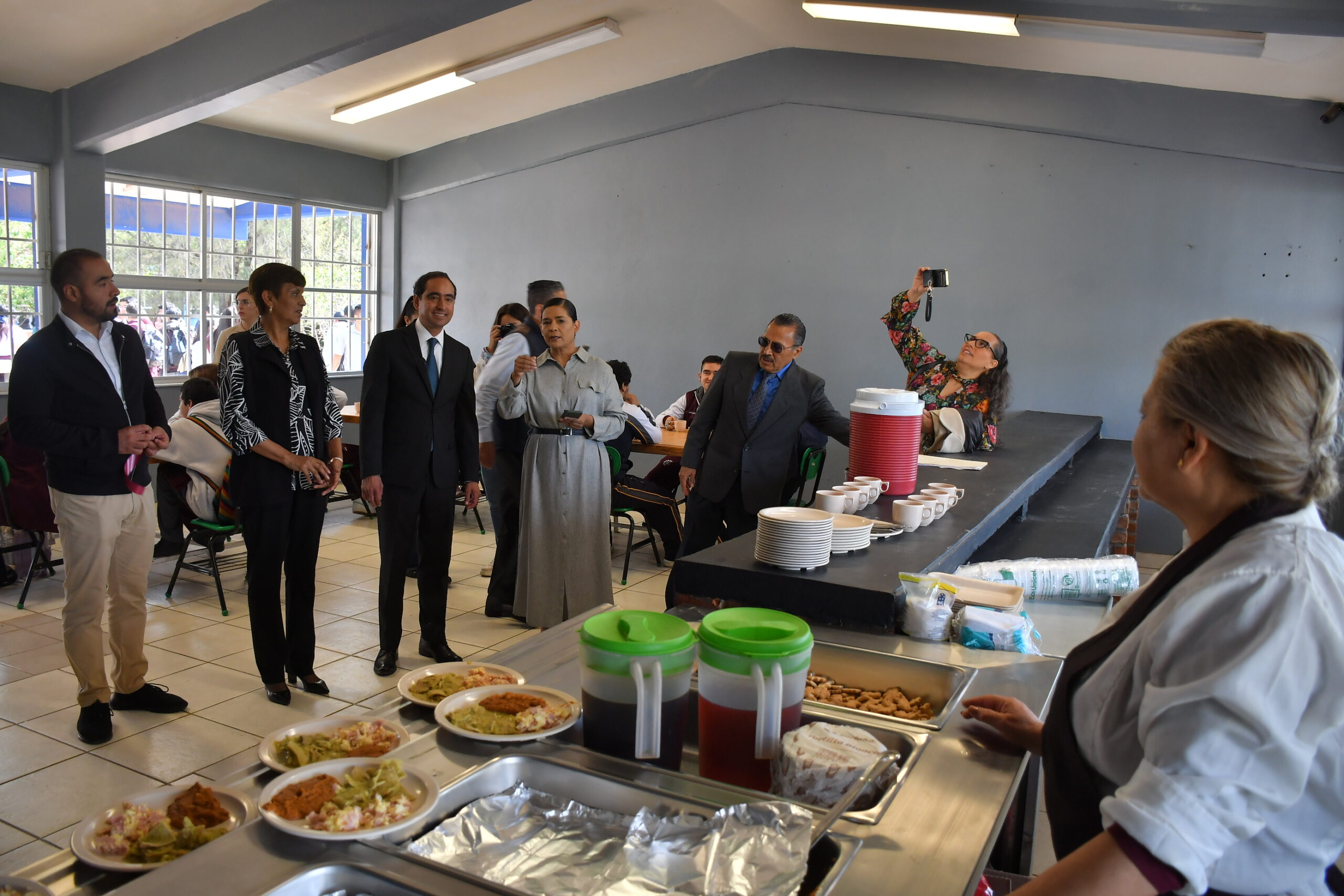 En este acto protocolario de inauguración del Comedor Estudiantil y Comunitario, estuvieron presentes José Saldívar Alcalde, Presidente Municipal de Guadalupe; Vicente Márquez Sánchez Comisionado responsable de la Oficina Estatal y Director General de Estudios Tecnológicos; Mariana Madrid Jasso, Directora del CETIS Número 113; María de la Luz Muñoz Morales, Síndica Municipal y Víctor Murillo, Subsecretario de Bienestar Social.