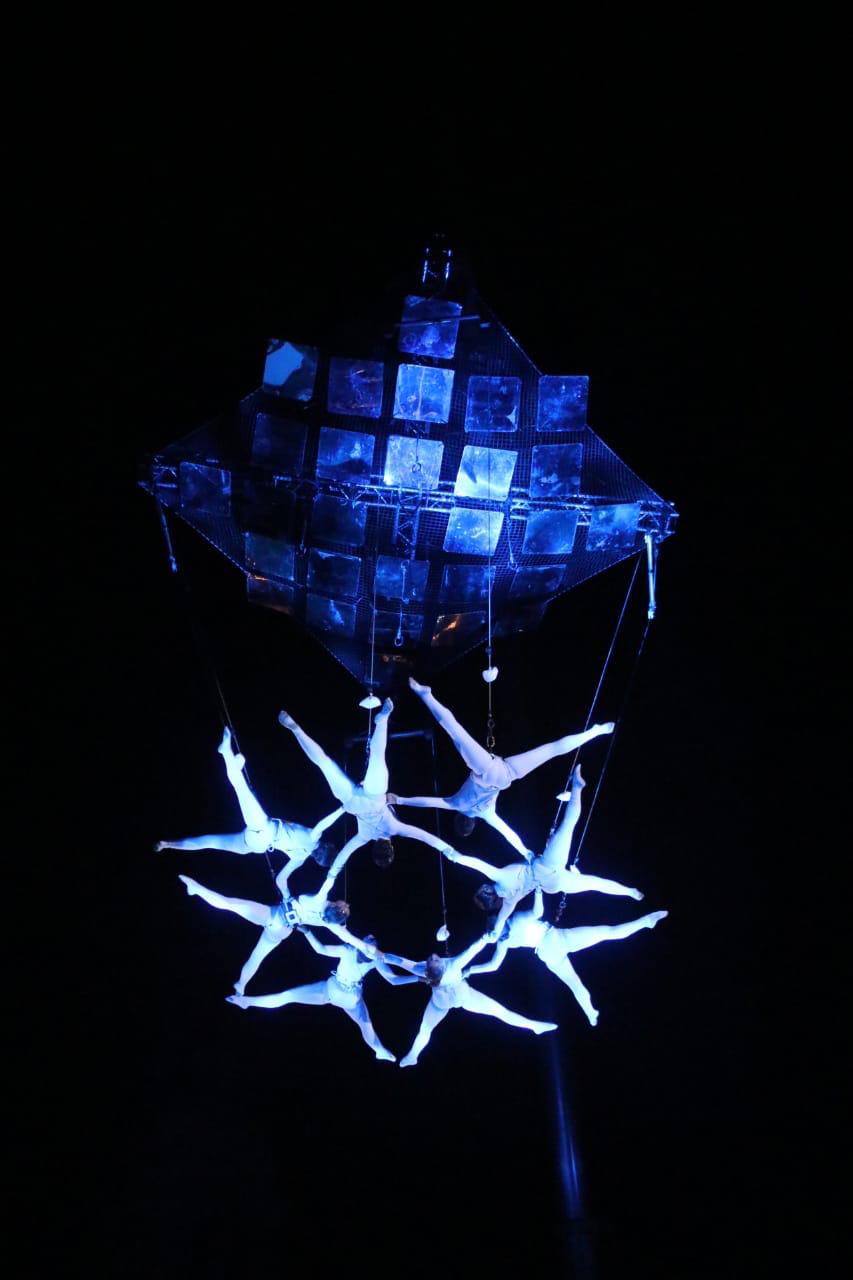 El elenco, dirigido por Roberto Strada Walemberg e integrado por talentosas artistas, una vez más surcó el cielo zacatecano realizando coreografías grupales llenas de alegorías y símbolos. La actuación estuvo acompañada magistralmente por la Camerata de la Ciudad de Zacatecas, que interpretó la adaptación de “Las cuatro estaciones” de Antonio Vivaldi.