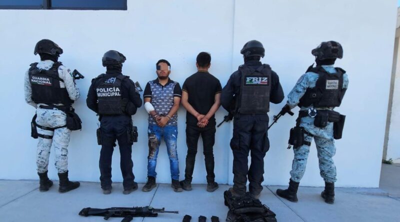 En una segunda acción, en la comunidad Colonia Plenitud, también en Fresnillo, efectivos de la FRIZ, Ejército Mexicano y Guardia Nacional detuvieron a Juan N., de 19 años y Felipe N., de 27 años, ambos originarios de Durango.