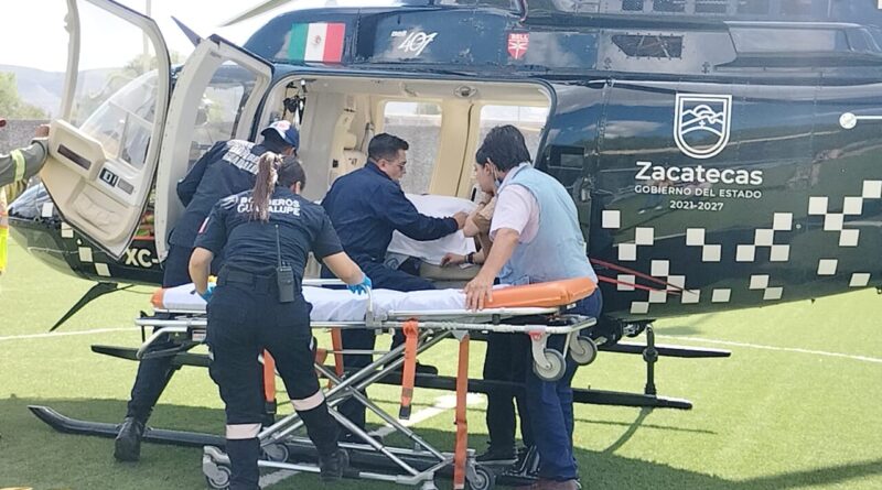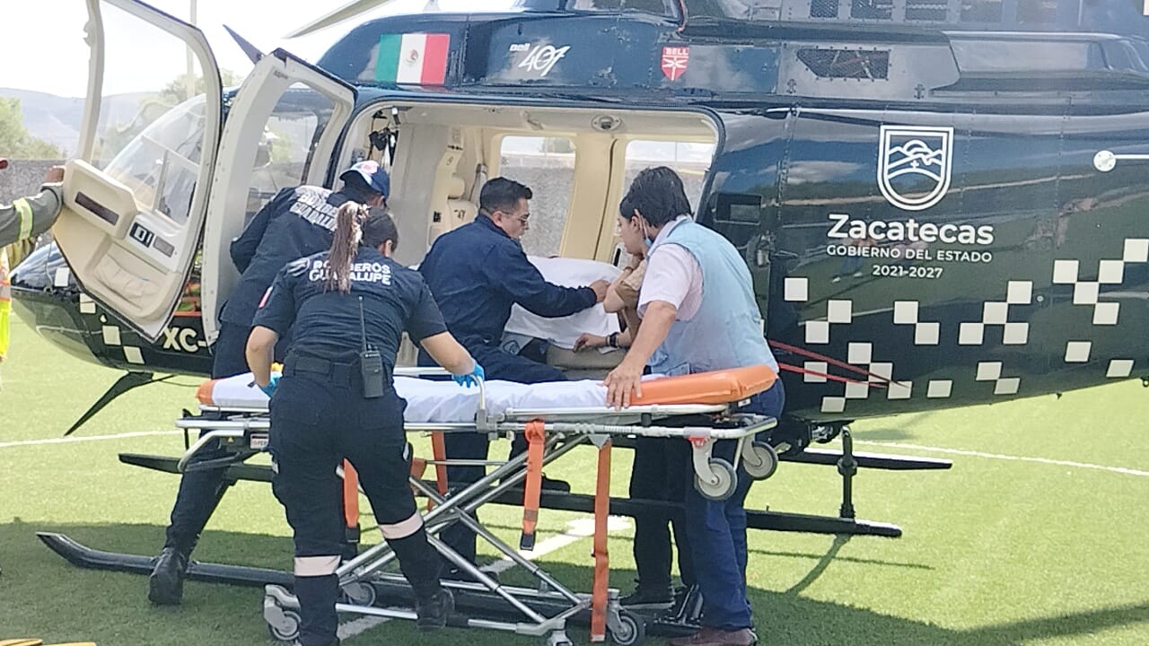 Al ser trasladada de emergencia al Hospital General de la Mujer Zacatecana, en el helicóptero “Cuervo” de la Secretaría de Seguridad Pública, que encabeza el General Arturo Medina Mayoral, recibió atención oportuna y logró estabilizar su calidad de salud.